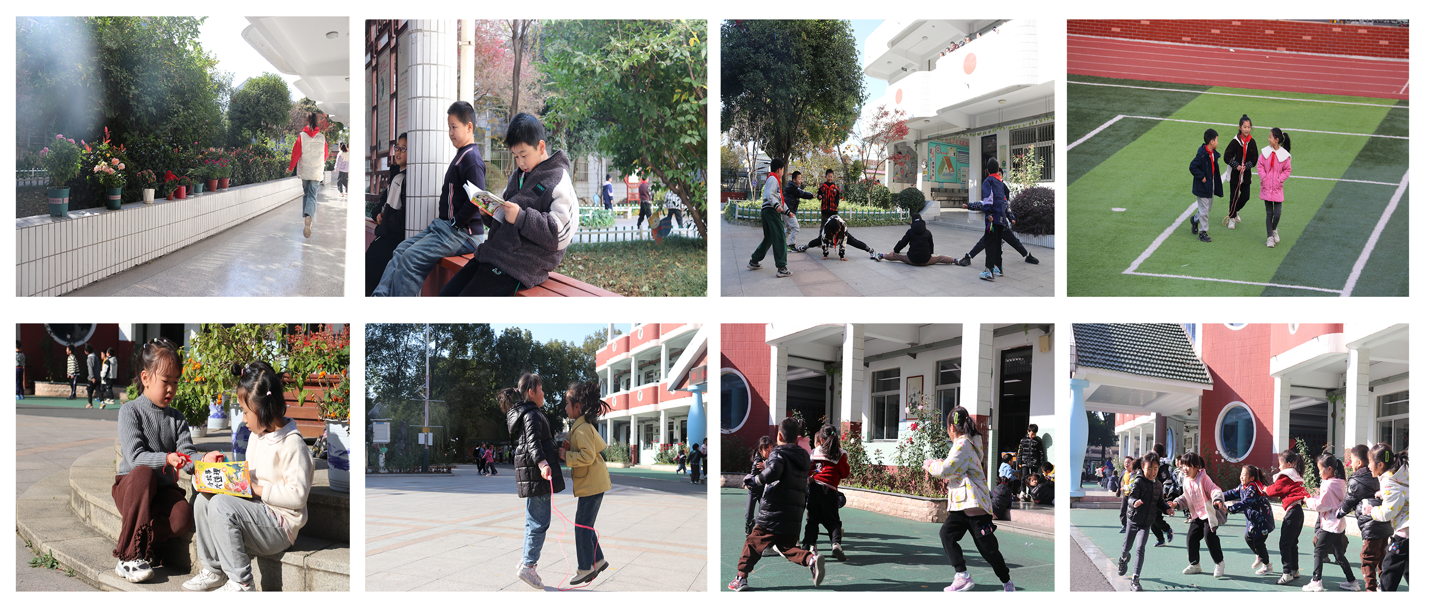创作说明: 叮铃铃,下课啦。同学们走出教室,有的跳绳,有的阅读,有的游戏真开心呀!