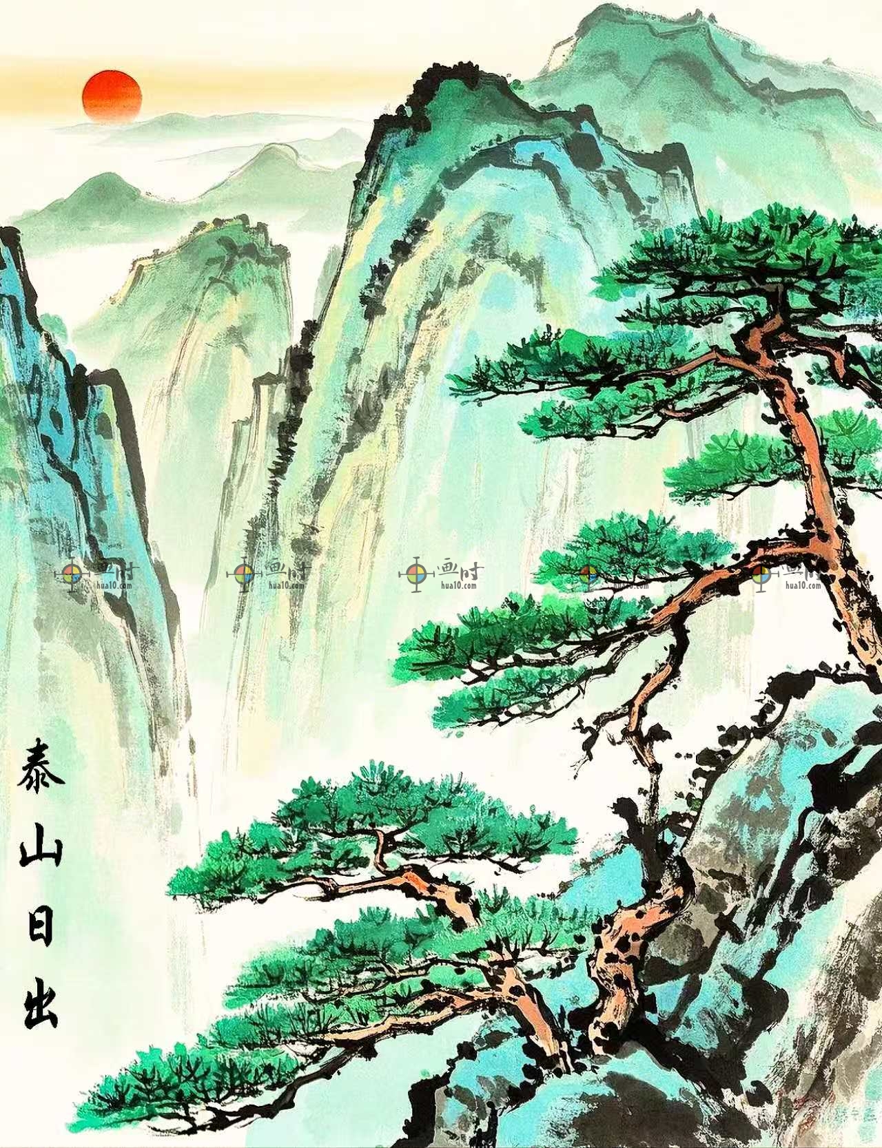 主题意境:展现泰山日出的壮丽景象,体现中国传统山水画的雄浑大气