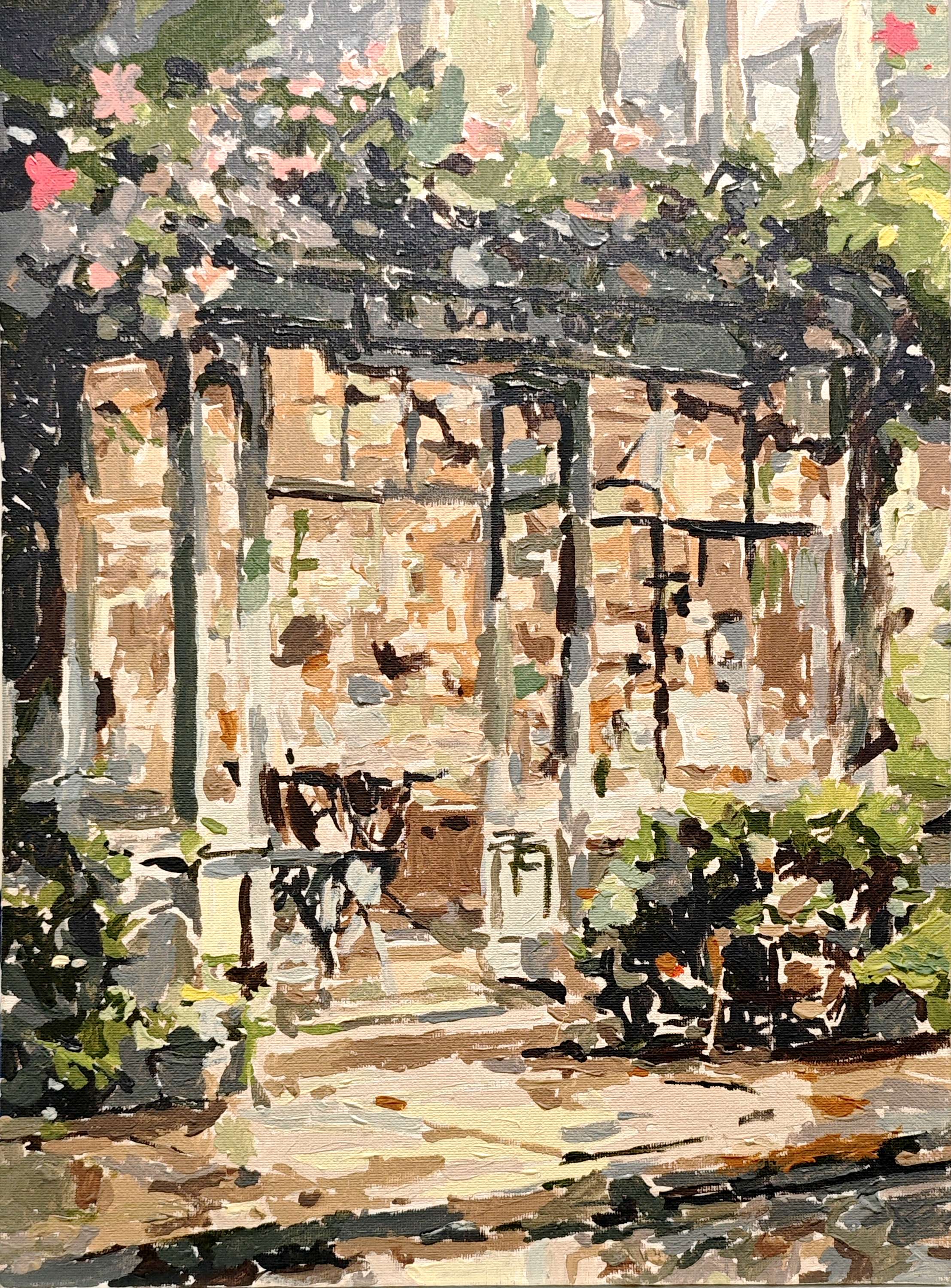 创作说明: 幽深小巷的拐角,藏着一间暖黄色的咖啡屋。这幅画以柔和的笔触晕开午后的慵懒,木质窗框、斑驳墙面、门口垂落的绿植,搭配窗内氤氲的咖啡热气,将都市里难得的静谧与松弛定格。它不仅是一间咖啡屋的写照,更是喧嚣生活里的一隅精神栖息地,唤起人们对慢时光的向往。