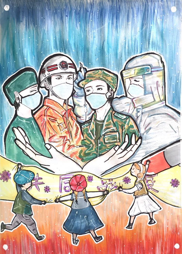 绘画是表露自我感情方式之一,所以我想用自己的双手去绘画一幅能够表达我对这群“可爱的人”的高度赞美。希望疫情赶快结束,在此向各位前线人员说一声“谢谢您们,您们辛苦了。”